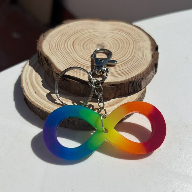 Llaveros solidarios simbólicos del autismo. La mitad de lo recaudado va destinado a personas neurodivergentes precarizadas (colaboración con el equipo La Madriguera. 🧡