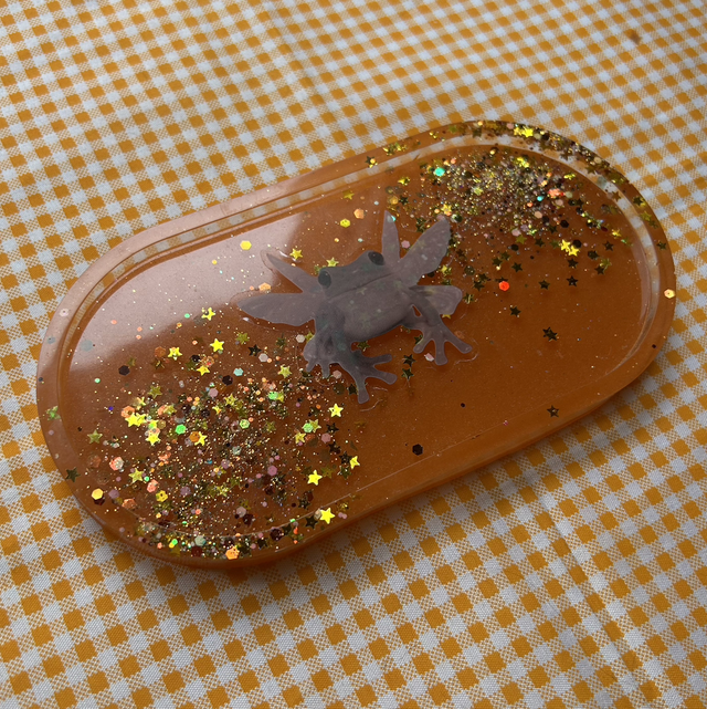 Bandeja rana. Hecha a mano con resina epoxy, polvos de mica y purpurina. Si la quieres totalmente personalizada háblame por instagram en @poppy.acolor 💗