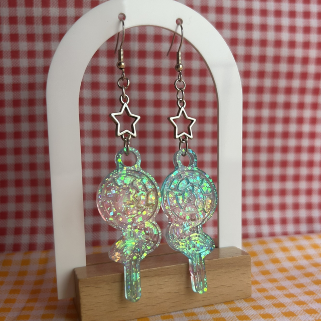 Pendientes Piruleta. Hechos a mano con resina epoxy y purpurina. Si los quieres totalmente personalizados con otros, varios colores o pares desiguales, háblame por instagram en @poppy.shhop 💗